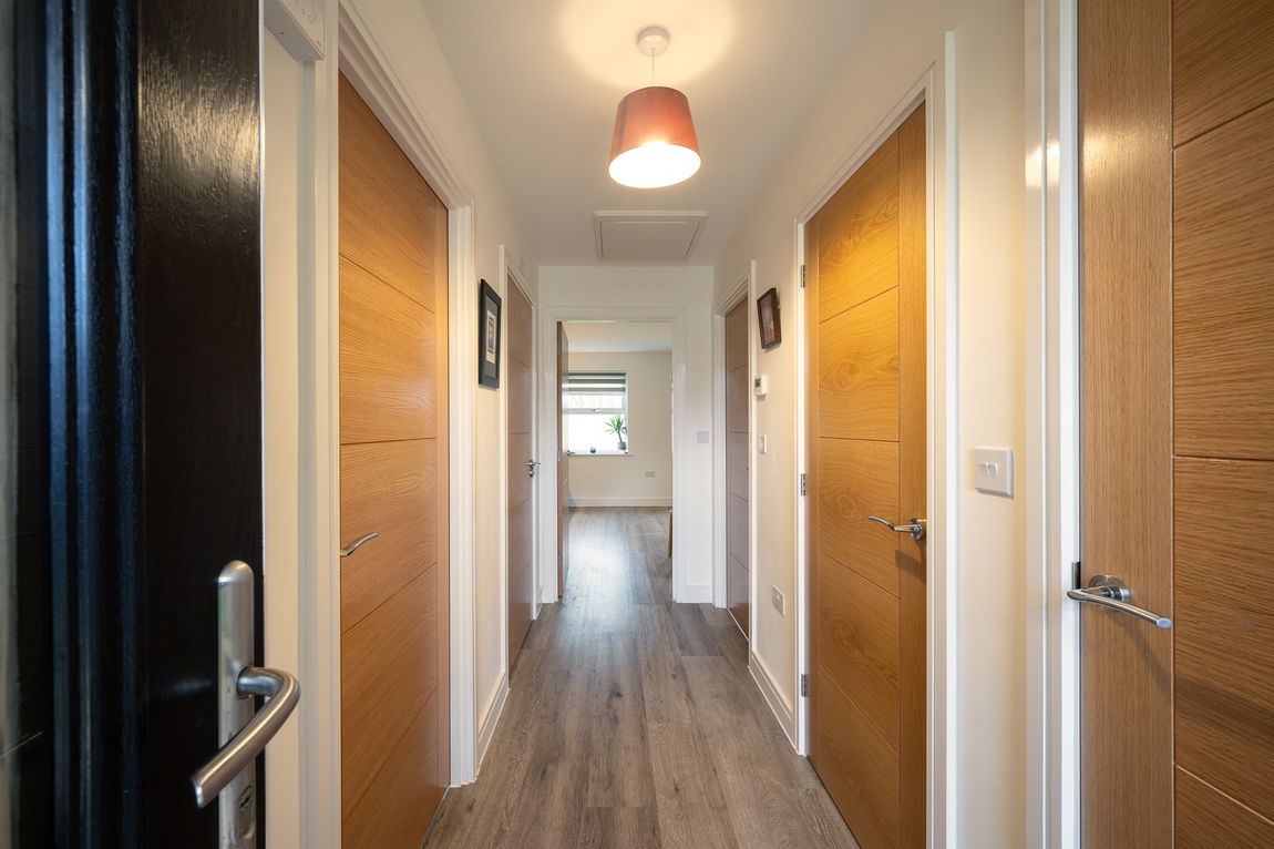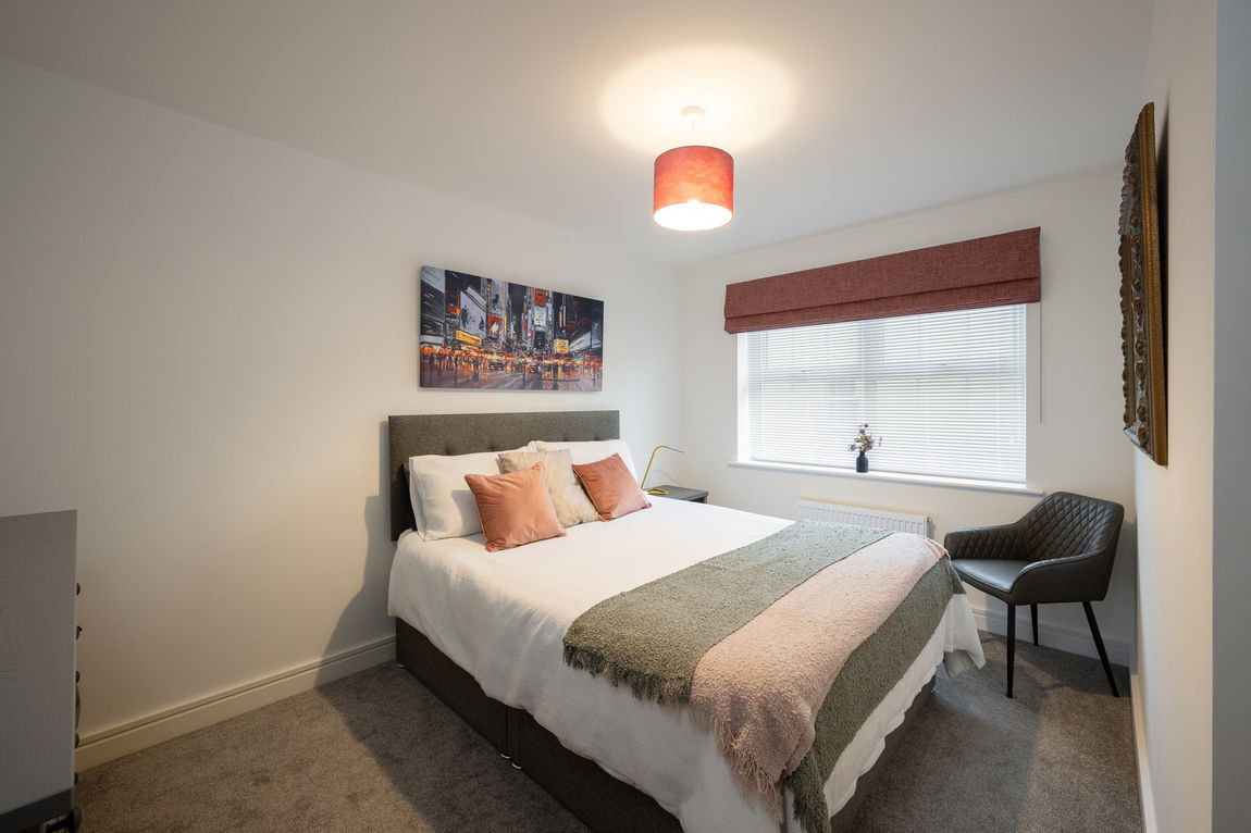 The principal bedroom benefits from its own private en-suite, while a second generously sized double bedroom is served by a stylish family bathroom. Externally, the property is complemented by garage, electric charging point and two allocated parking spaces.