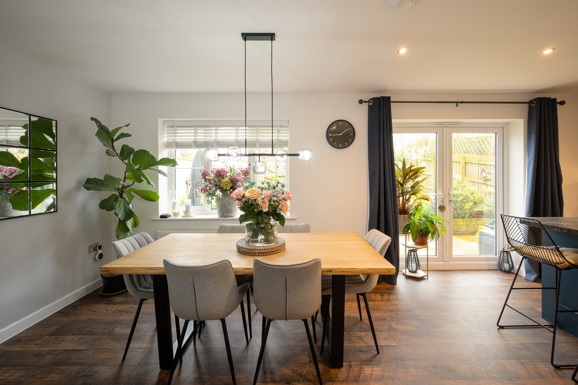 Beautifully presented throughout, this spacious home is ideal for modern family living. Upon entering, you are welcomed by a practical entrance hall leading to a convenient downstairs W/C, a separate living room perfect for relaxing, and a standout open-plan kitchen/diner. This impressive space is fitted with integrated appliances including an oven, hob, dishwasher, fridge, and freezer, and provides an excellent area for both everyday living and entertaining. Double French doors open directly onto the generous rear garden, creating a seamless indoor-outdoor flow.
