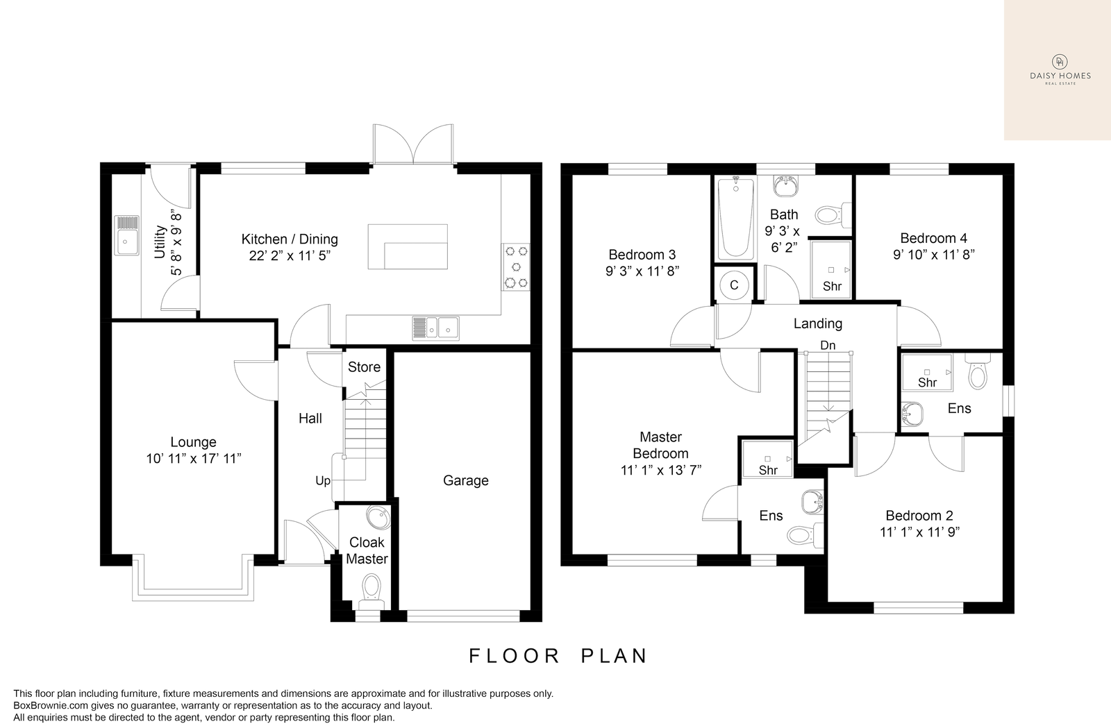 Upstairs features four generous bedrooms, two with ensuite facilities, alongside a family bathroom. Externally, there is driveway parking for two large vehicles, a garage with power, and additional visitor parking. Offered with no onward chain, this is an ideal family home in a popular and convenient location.