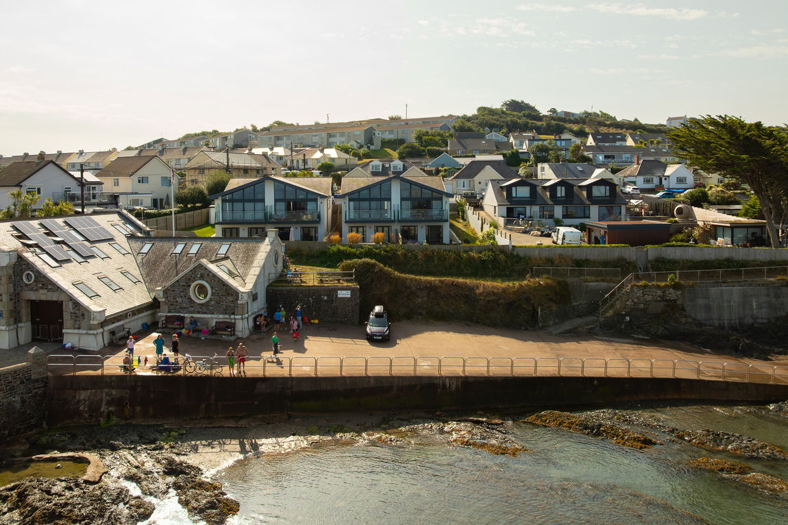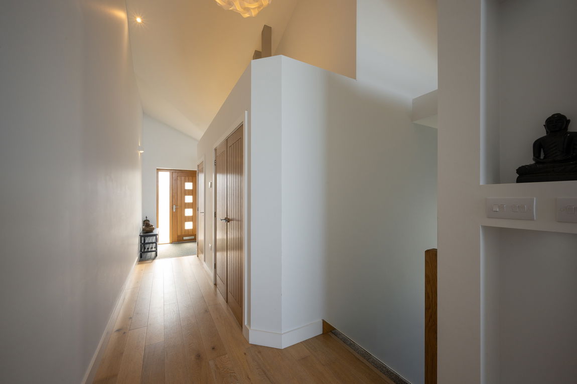 Designed with energy efficiency and effortless style in mind, the home features ultra-efficient boilers, underfloor heating, and sleek RAL 7016 grey aluminium double-glazed windows and doors. The clean lines of the modern white render are perfectly complemented by the striking coastal setting.