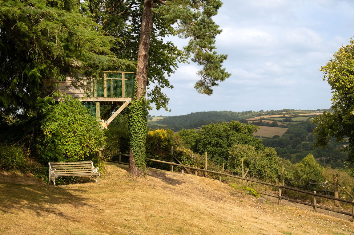 The formal gardens are a joy to behold, manicured lawns, terraced seating areas, a tranquil pond, and a whimsical Victorian grotto. A level croquet lawn lies beside the house, while a productive orchard filled with apple, pear, and plum trees frames the luxury huts.