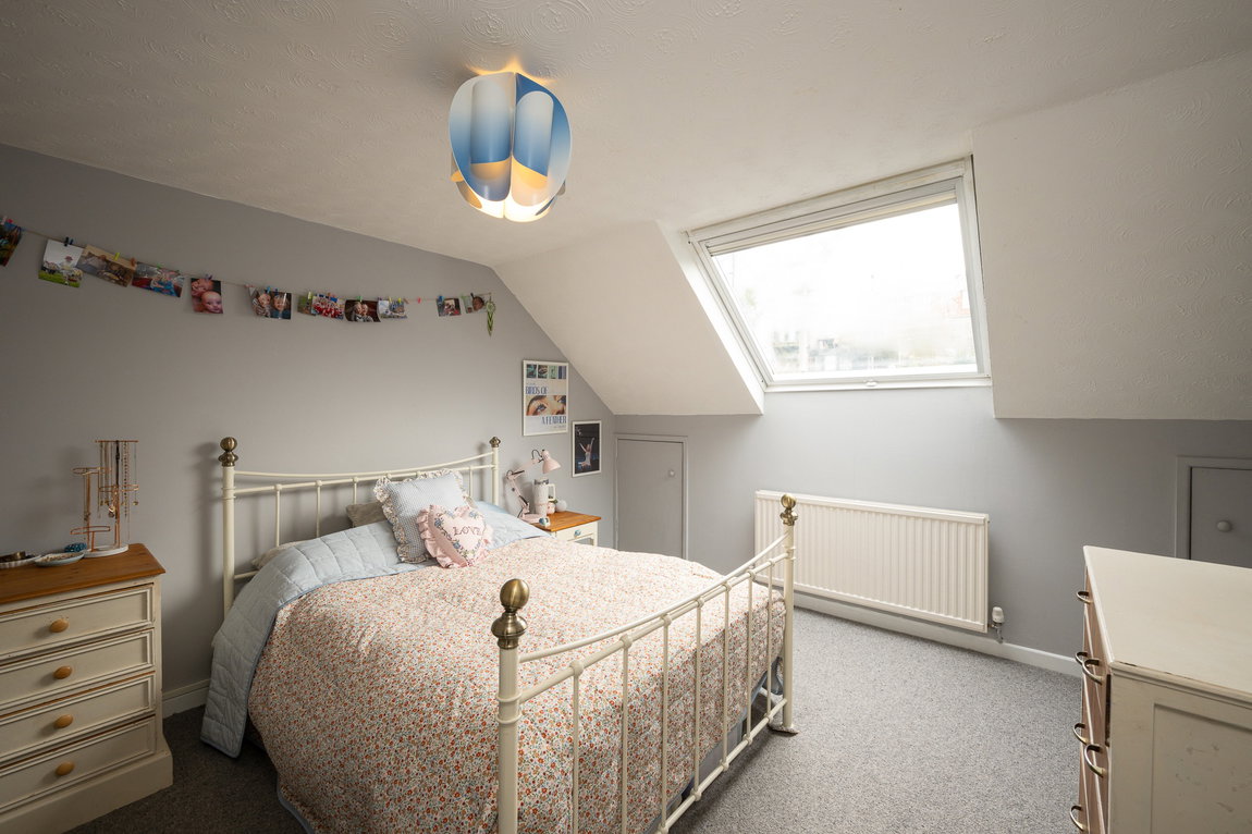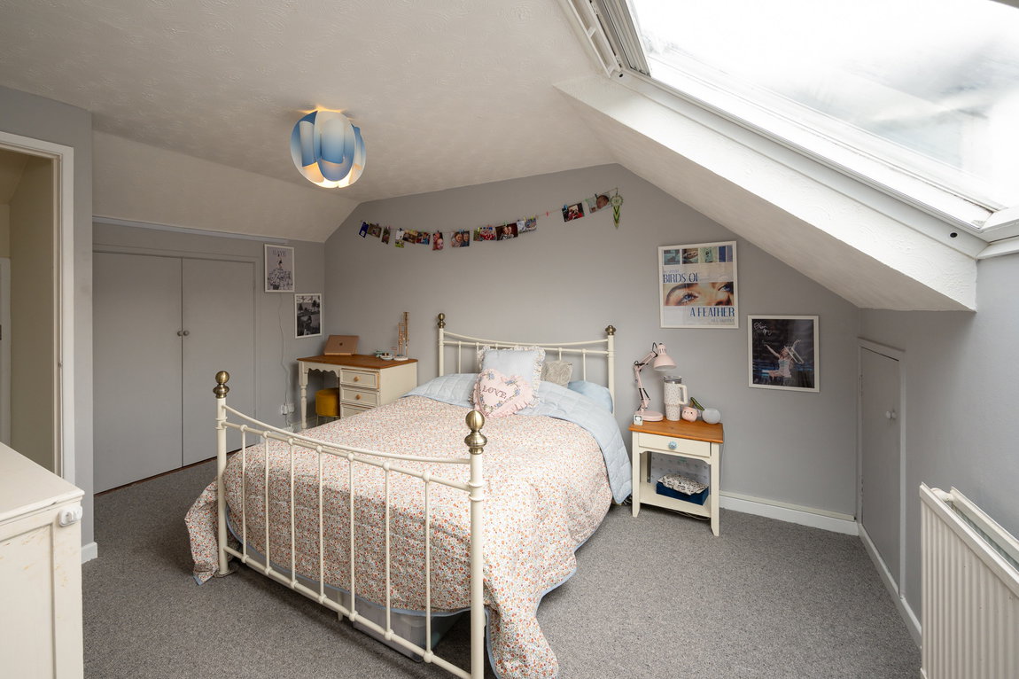 The top floor offers further versatility, with a third bedroom featuring built-in storage and an abundance of eaves storage space. This level provides a more private setting, making it an ideal retreat for a teenager or guest accommodation.