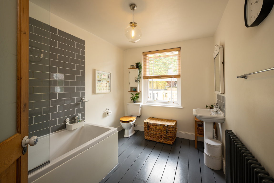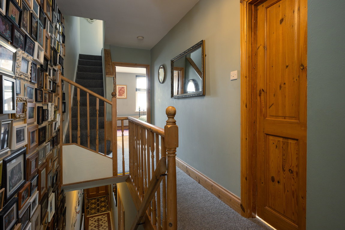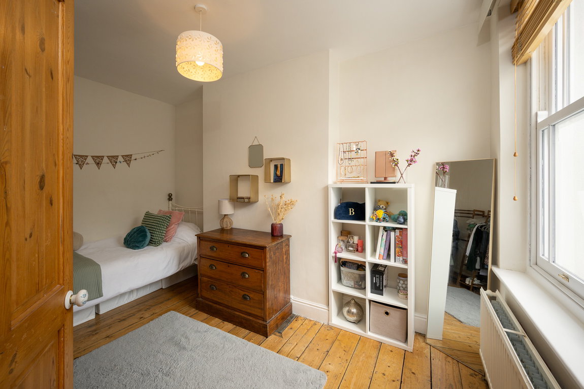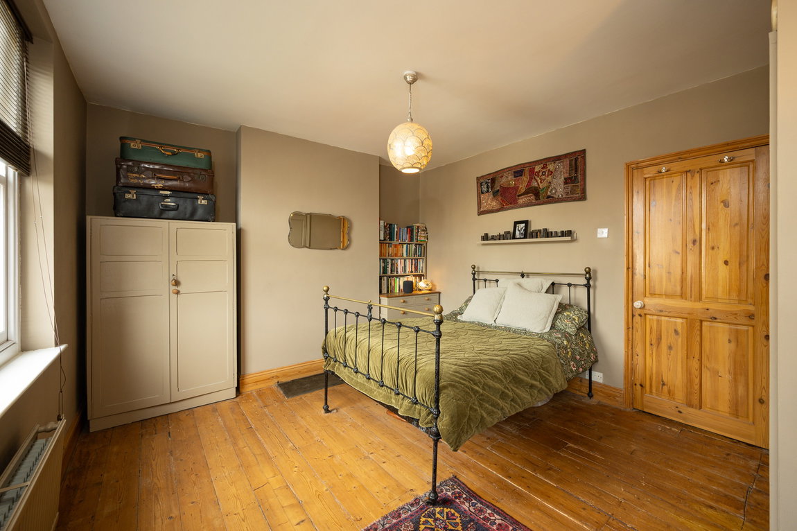 Upstairs, the first floor hosts a generous family bathroom fitted with a large bath and shower over, along with the spacious principal bedroom which benefits from built-in wardrobes and beautiful original wood flooring. Bedroom number three is also featured on this floor, again with stunning original wood flooring. All windows throughout the property are double glazed, with hardwood frames, adding both character and efficiency.