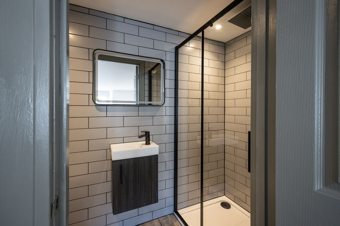 A sleek and contemporary four-piece family bathroom completes this beautifully designed floor.