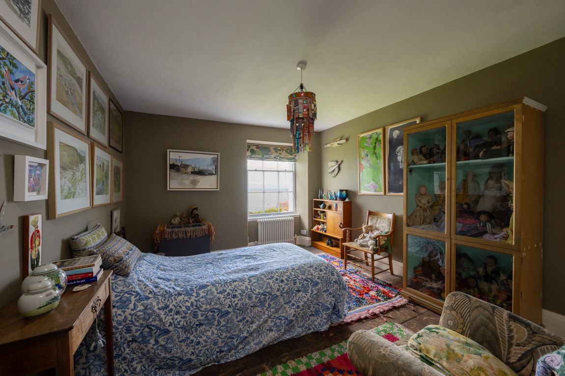 The second floor is home to a magnificent drawing room, which opens onto a newly installed balcony through three sets of double doors. Here, you will be captivated by sensational coastal vistas that stretch across the sea to Wales. A secondary drawing room offers additional panoramic views and includes a cozy studio, a large porch, and a charming garden room that leads out to a well-established garden.