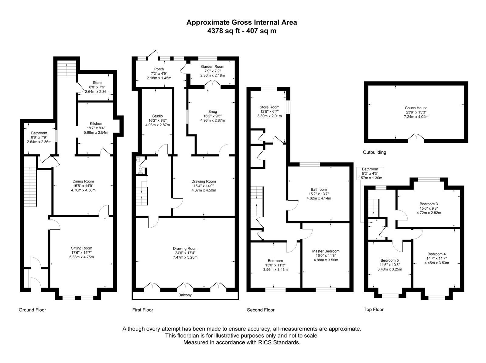 Ascending to the third floor, you will find three beautifully appointed bedrooms and a generously sized storeroom. One of the grand rooms has been transformed into a luxurious bathroom, complete with a roll-top bath, creating a serene spa-like retreat. The fourth floor presents three more exquisite bedrooms, each offering stunning views, along with another bathroom.